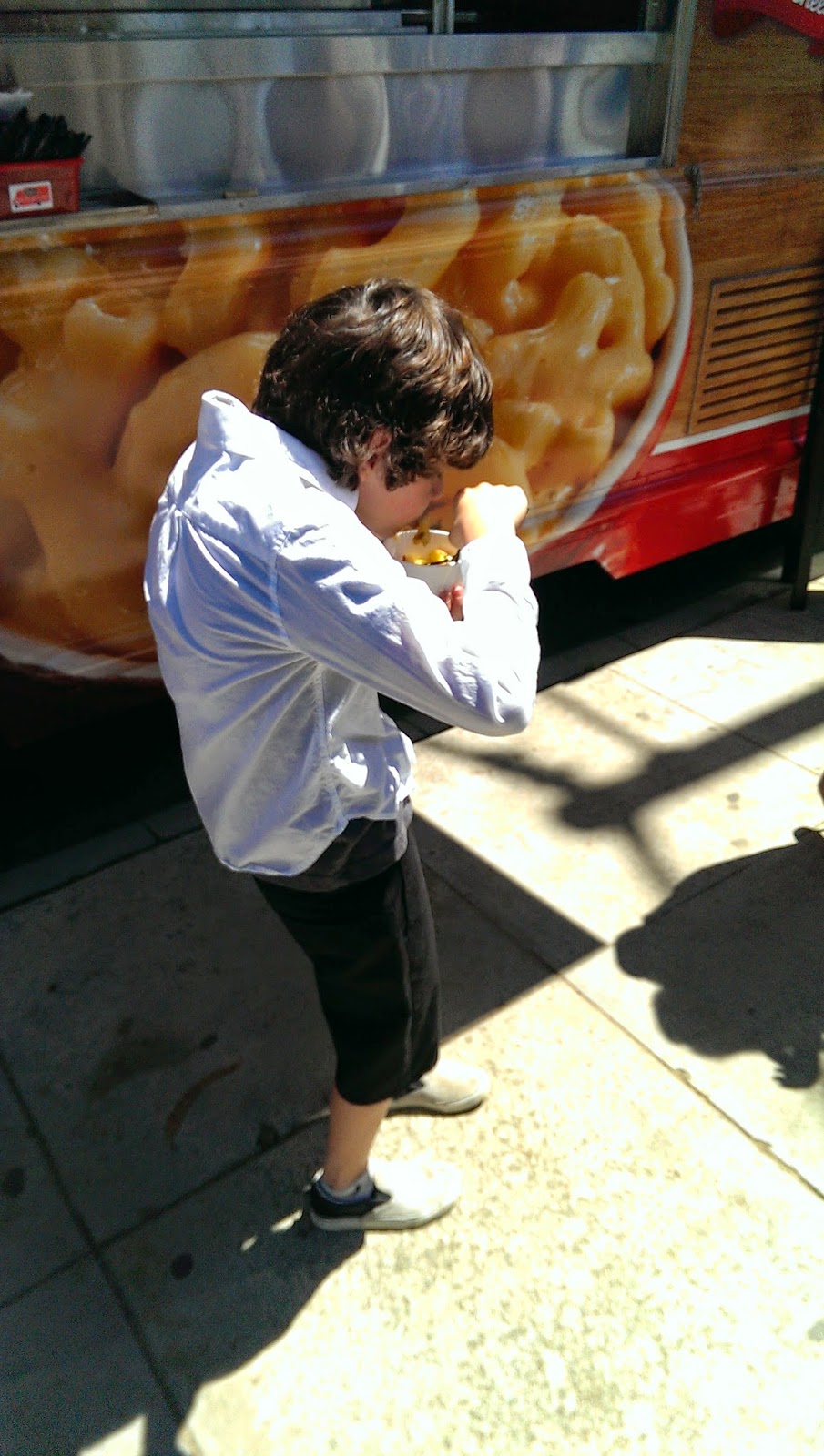 As he approached the Stouffer’s Truck he was immediately handed a bowl of mac n cheese and dug right in. I love a kid that is a hearty eater.