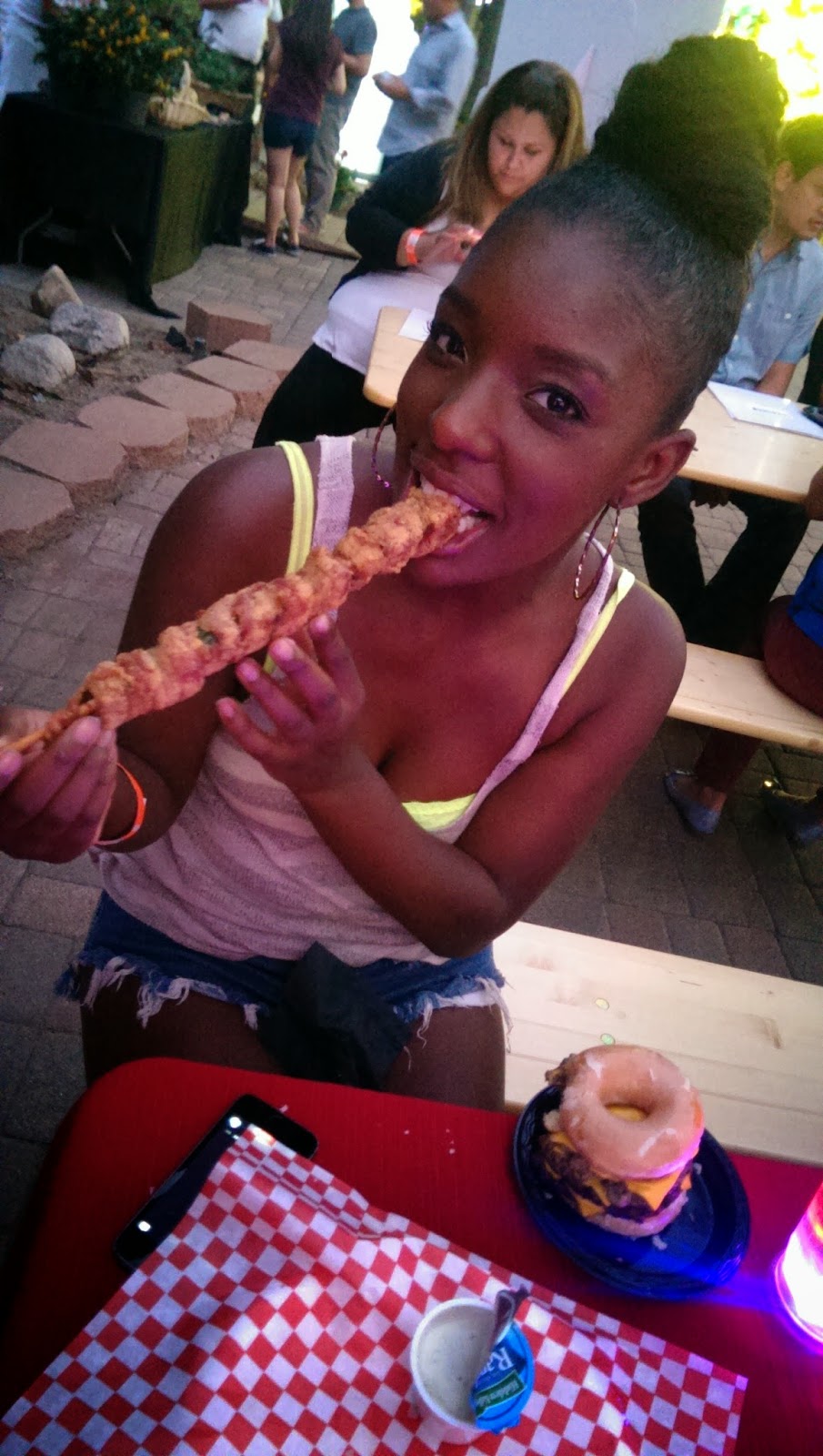 It did not end there she went for the Bacon wrapped Zucchini. How I wished I could eat the Krispy Kreme burger as well as the bacon wrapped zucchini. I absolutely love zucchini and Krispy Kreme, but no beef or pork for me. According to Ari, all of the food combinations were delicious and satisfying.